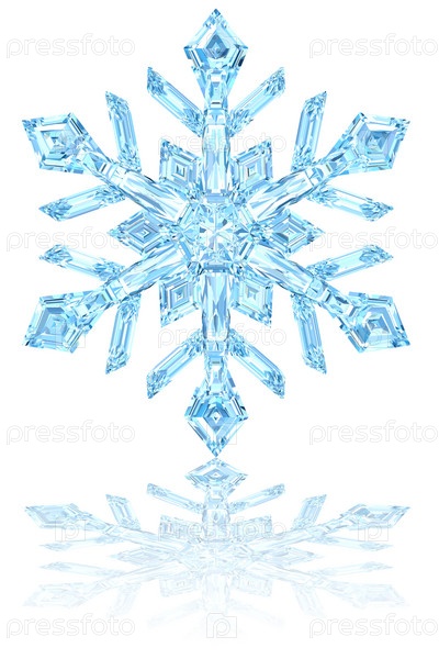 Голубая снежинка на белом фоне. 3D