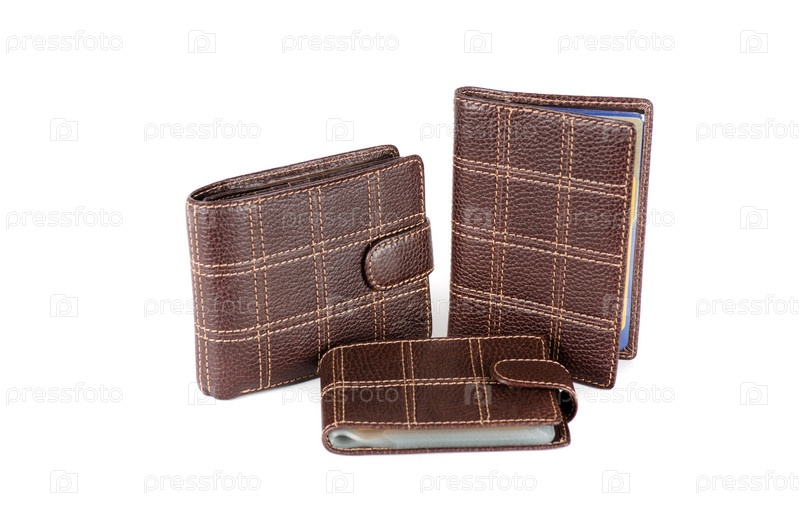 Кожаные мужские аксессуары на белом фоне