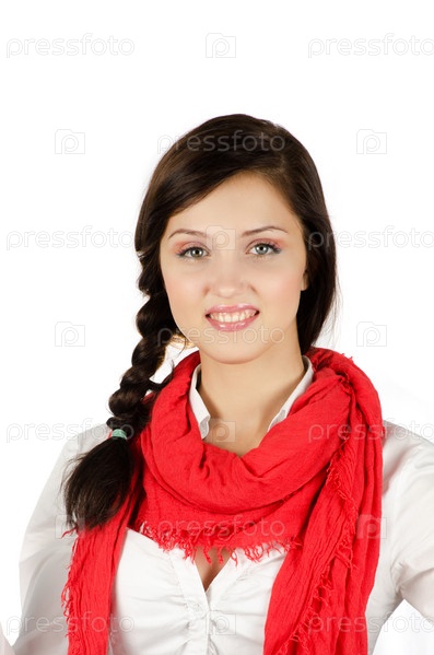 Портрет улыбающейся девушки, на белом фоне
