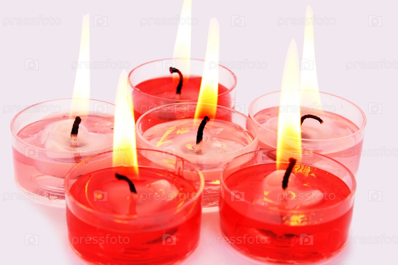 Красные свечи, изолированы на сером фоне