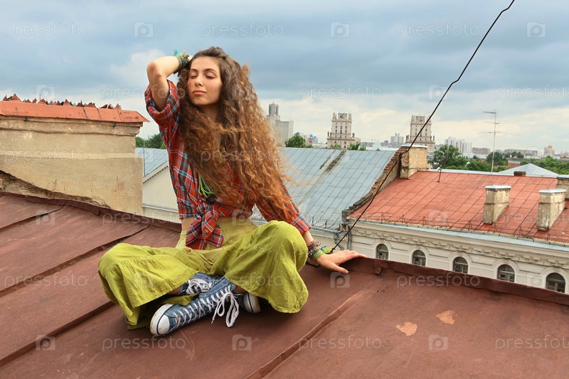 Молодая девушка на крыше