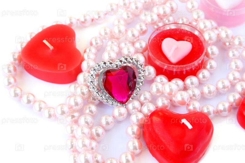 Бусы, брошка и свечи в форме сердечек