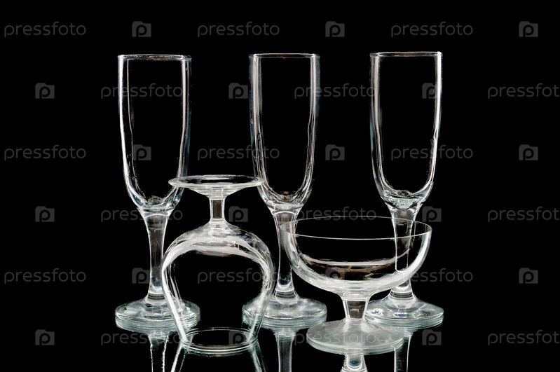 Пять пустых бокалов на черном фоне