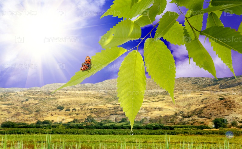 Божья коровка на ветке дерева в солнечный день