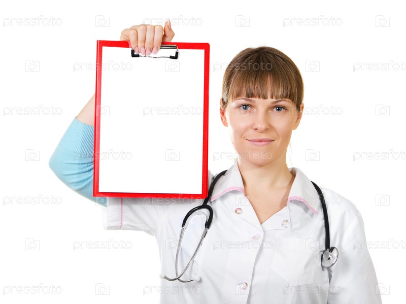 Врач показывает планшет с чистым листом бумаги