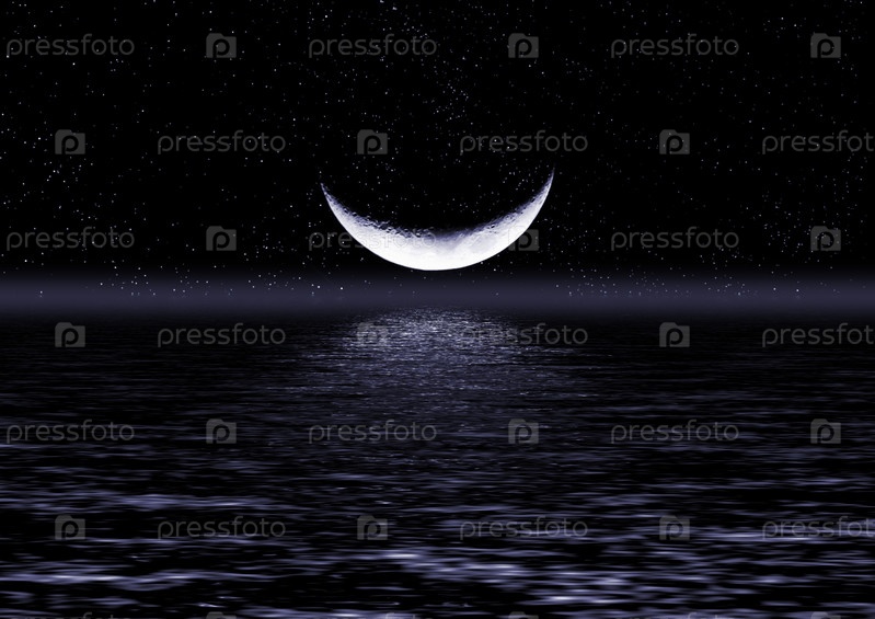 Половина луны на небе и отражение