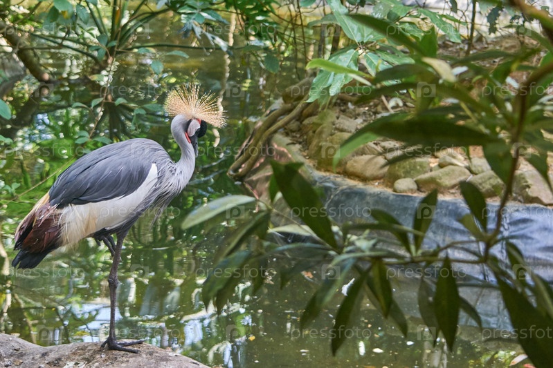 Венценосный журавль в парке возле водооема