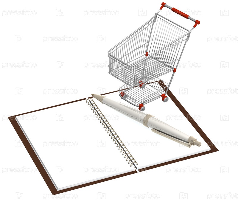 Пустая тележка и тетрадь