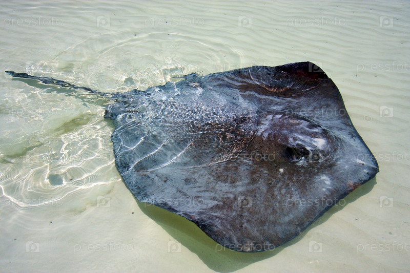 Скат в голубой лагуне Мексики