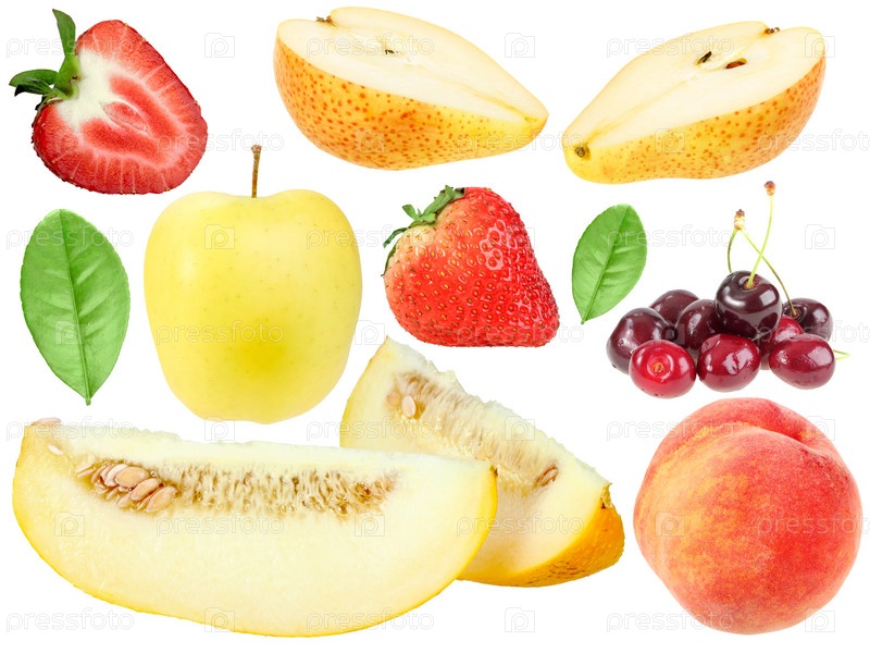 Набор свежих фруктов и ягод. изолировано на белом фоне. крупным планом