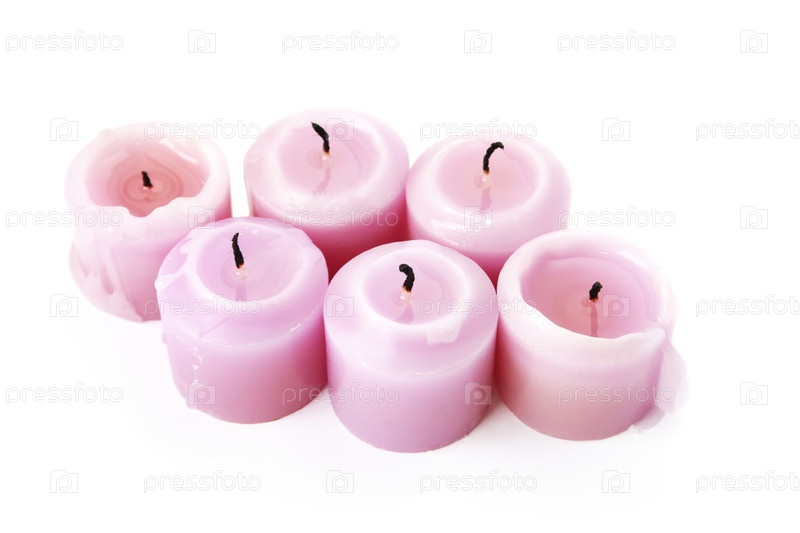 Розовые горящие свечей, изолированы на белом фоне