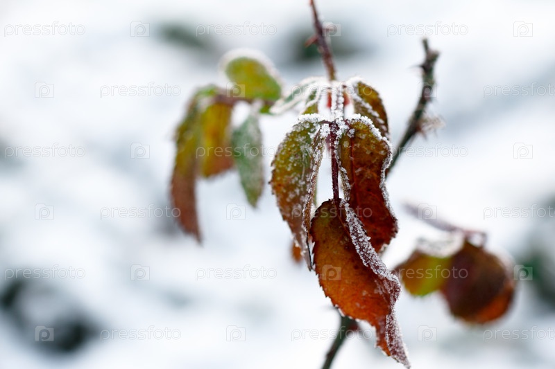 Замороженные листья под снегом