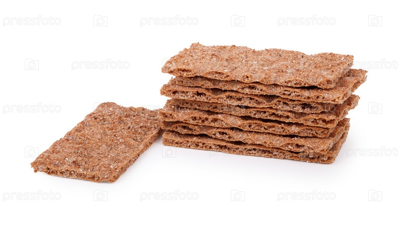 Стопка ржаных хлебцев, изолированная на белом фоне