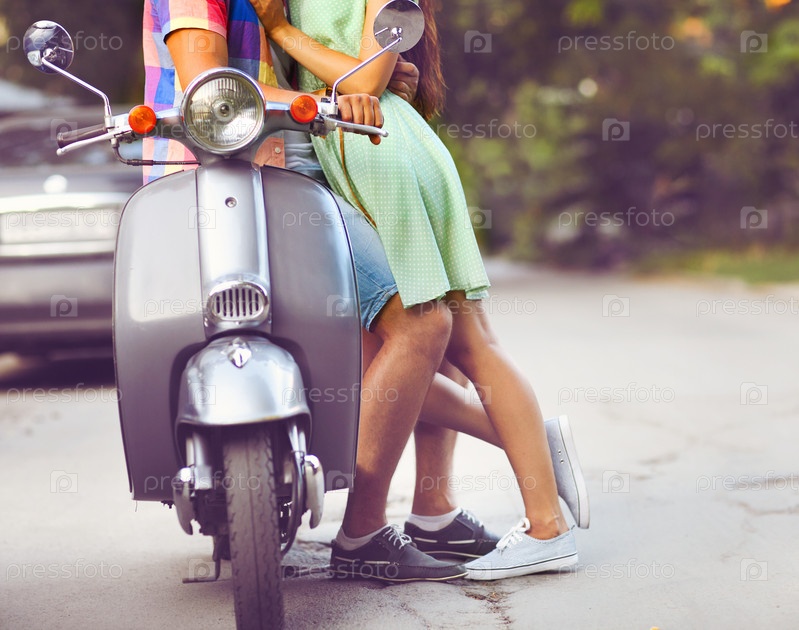 Молодая пара возле ретро скутера