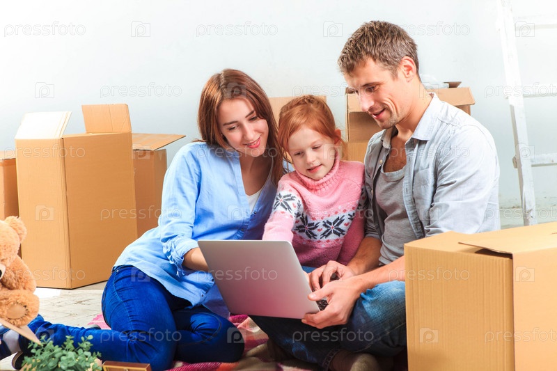 Счастливая семья во время ремонта и переезда