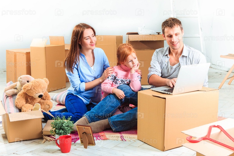 Счастливая семья во время ремонта и переезда