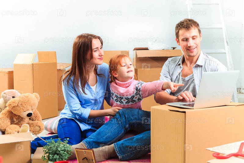 Счастливая семья во время ремонта и переезда