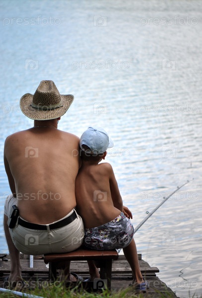 Мужчина и мальчик ловят рыбу