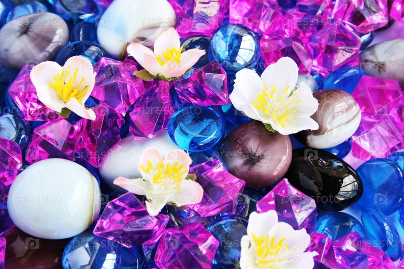 Цветные камни и цветы, фон
