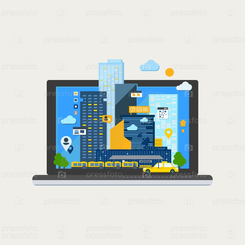 Городской пейзаж в ноутбуке