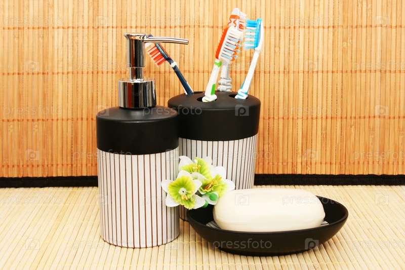 Туалетные принадлежности на бамбуковом фоне
