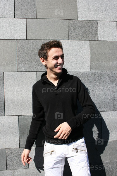 Портрет молодого человека на фоне стены