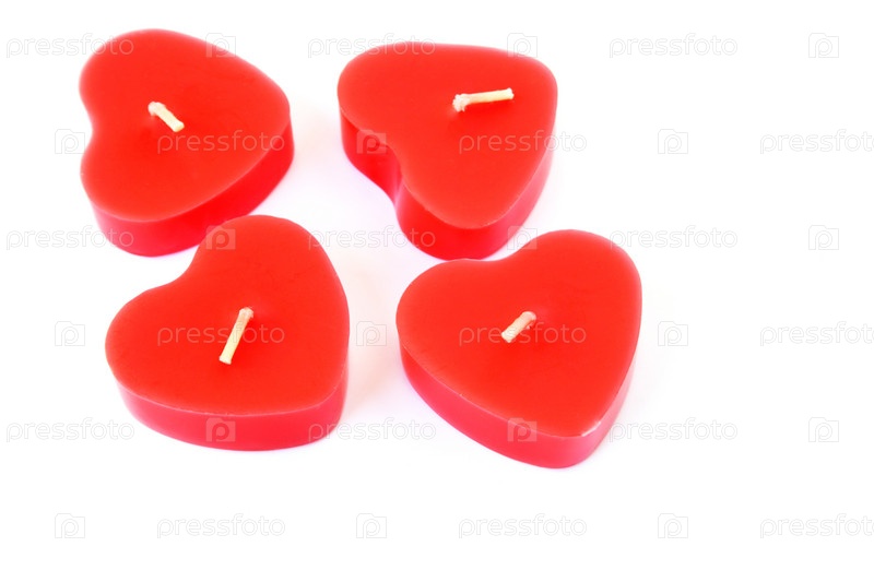 Красные свечи в форме сердечек, изолированы на белом фоне