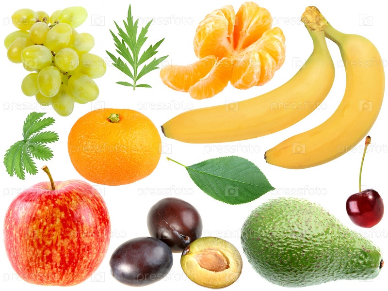 Набор свежих фрукты и ягод. изолировано на белом фоне. крупным планом