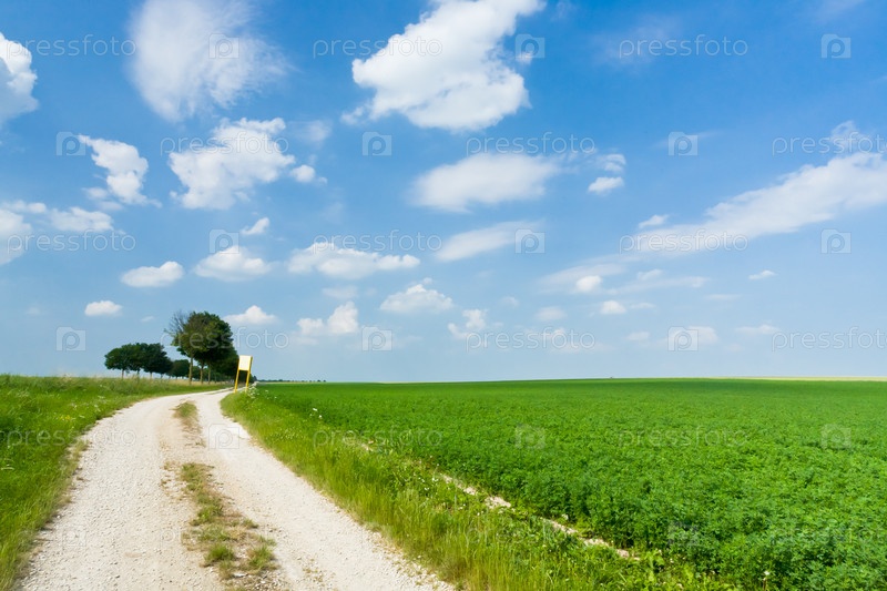 Проселочная дорога вдоль поля люцерн