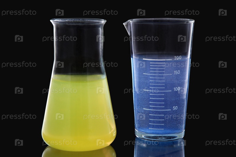 Химические растворы в стеклянных сосудах на черном фоне
