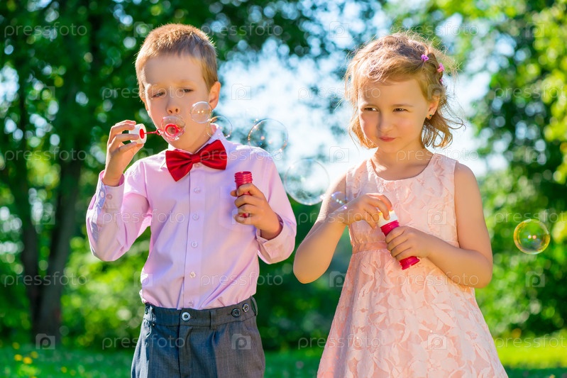 Дети с мульными пузырями в парке
