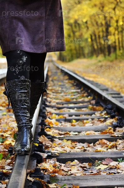 Женщины, идущая по рельсам