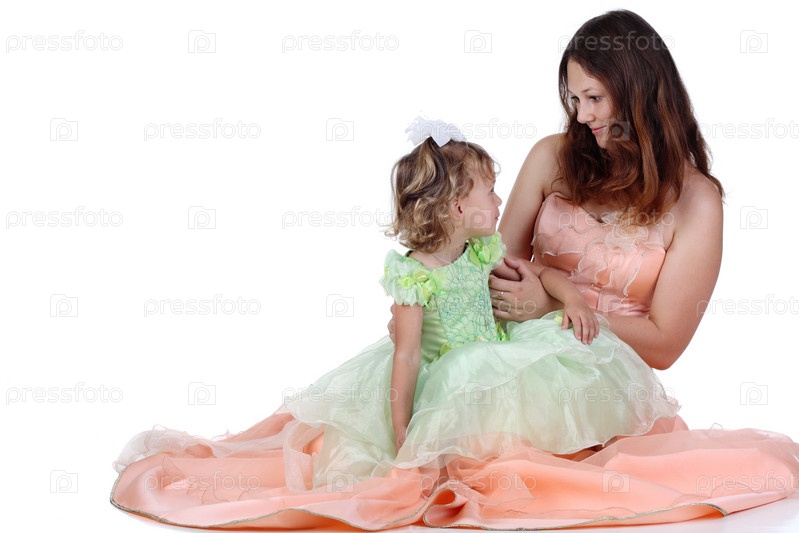 Мать и дочь на белом фоне