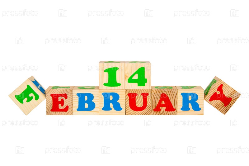 Деревянные кубики с надписью 14 февраля