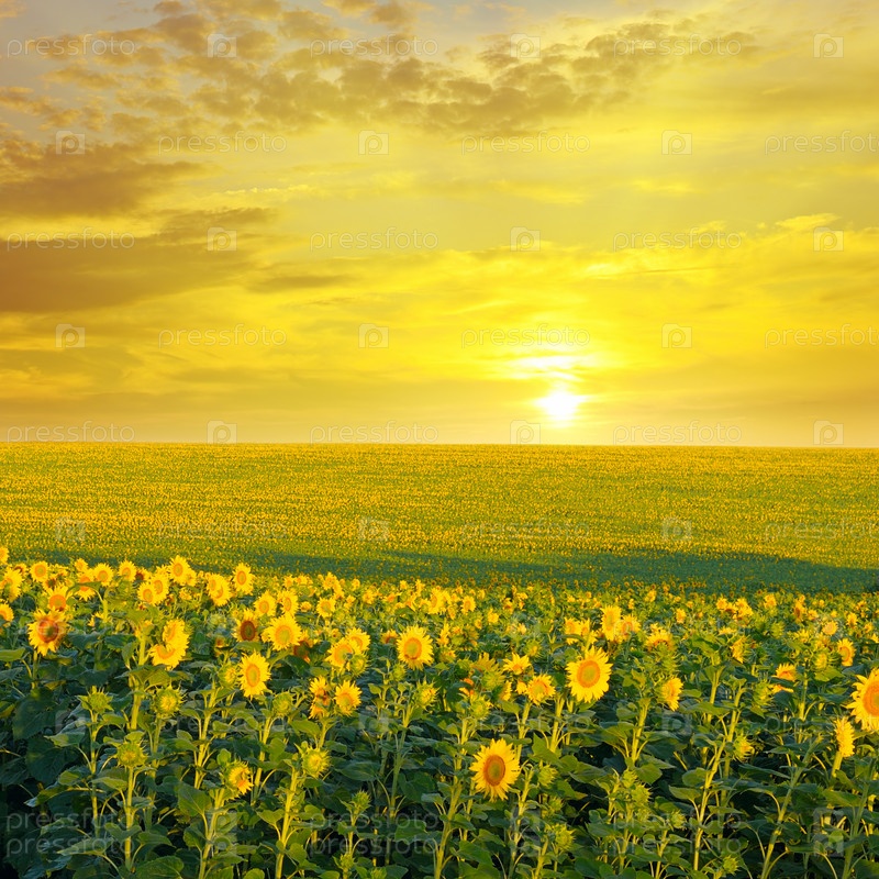 Поле подсолнухов и восход солнца