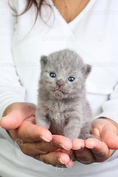 Британский котенок в руках женщины