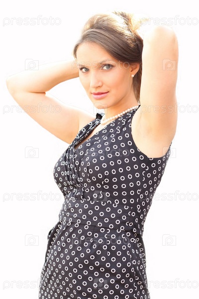 Женщина в платье на белом фоне