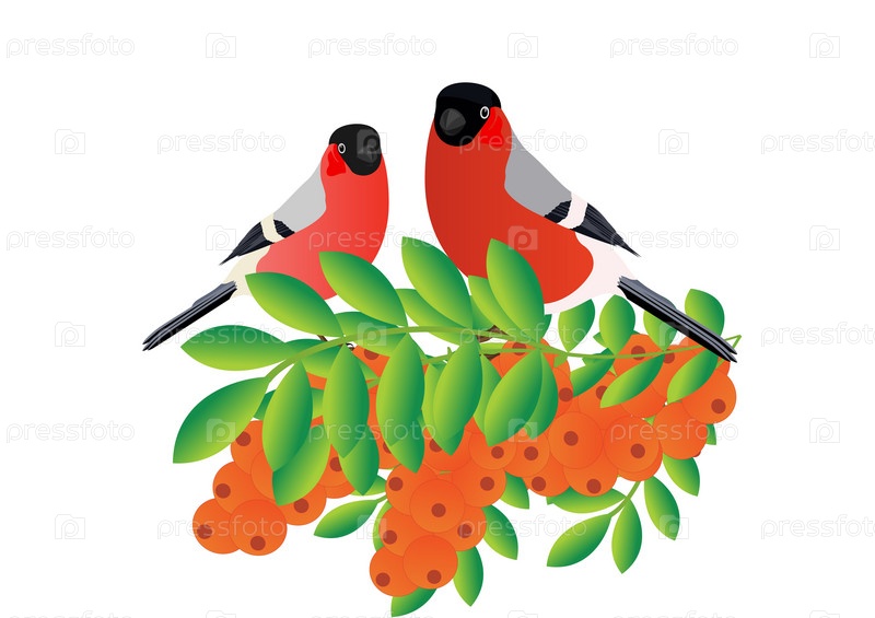 Снегири на ветке с облепихой