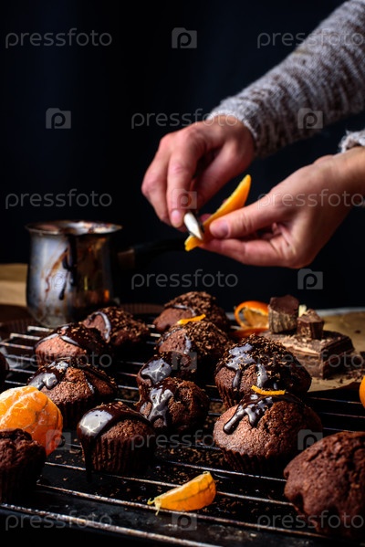 Приготовление шоколадных кексов с глазурью и цедрой цитрусовых