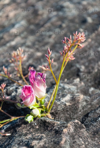 Розовые цветы на скале