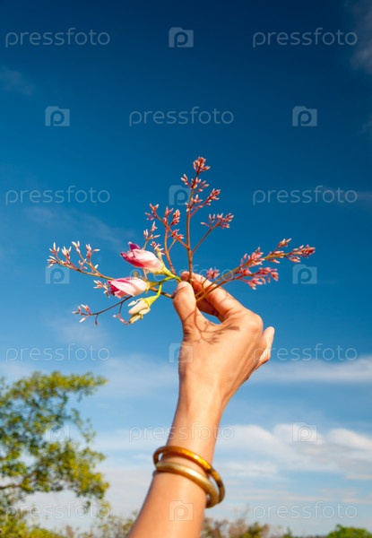 Розовые цветы в руках женщин