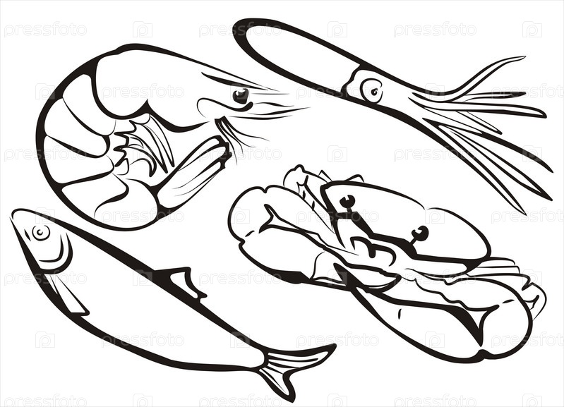 Морепродукты на белом фоне