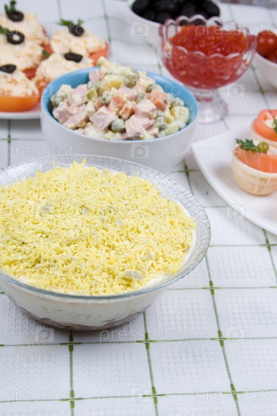 Холодные блюда и салаты на столе