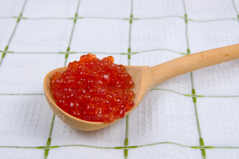 Деревянная ложка с красной икрой