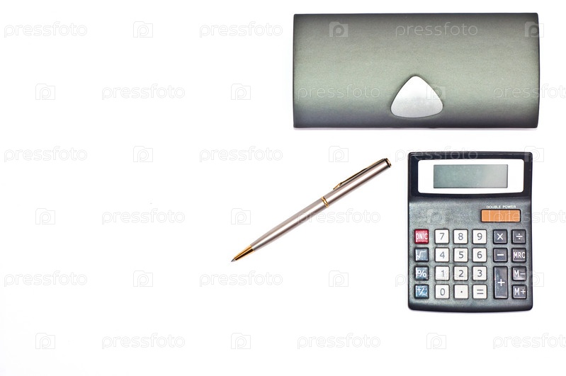Золото-серебряная ручка с калькулятором изолирована на белом