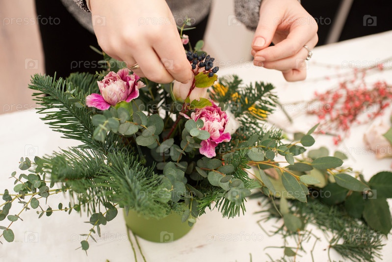 Создание букета из цветов, ветвей и ягод