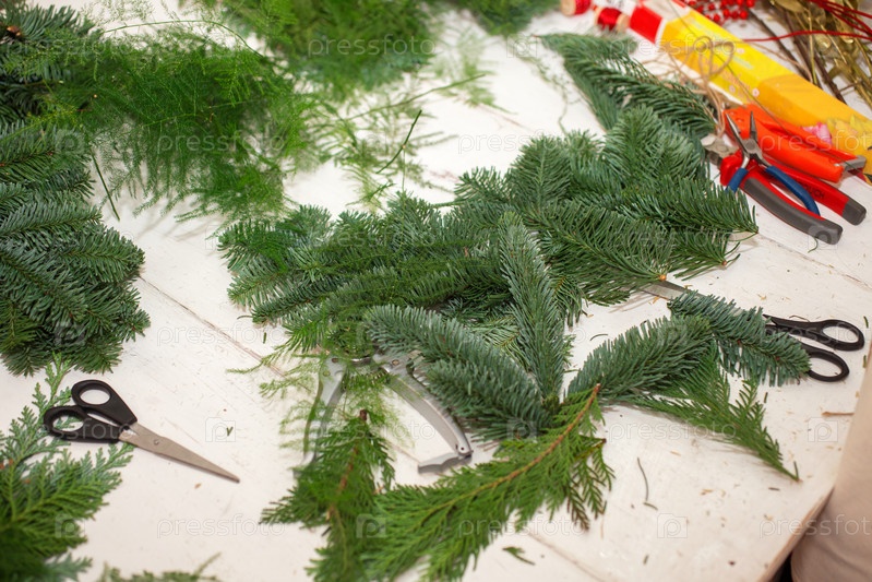 Создание зимней композиции из цветов и ветвей
