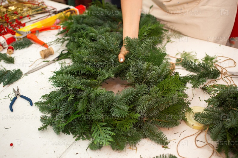 Создание венка из ветвей ели