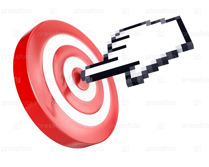 Курсор в виде руки попадает в мишень, изолировано на белом фоне