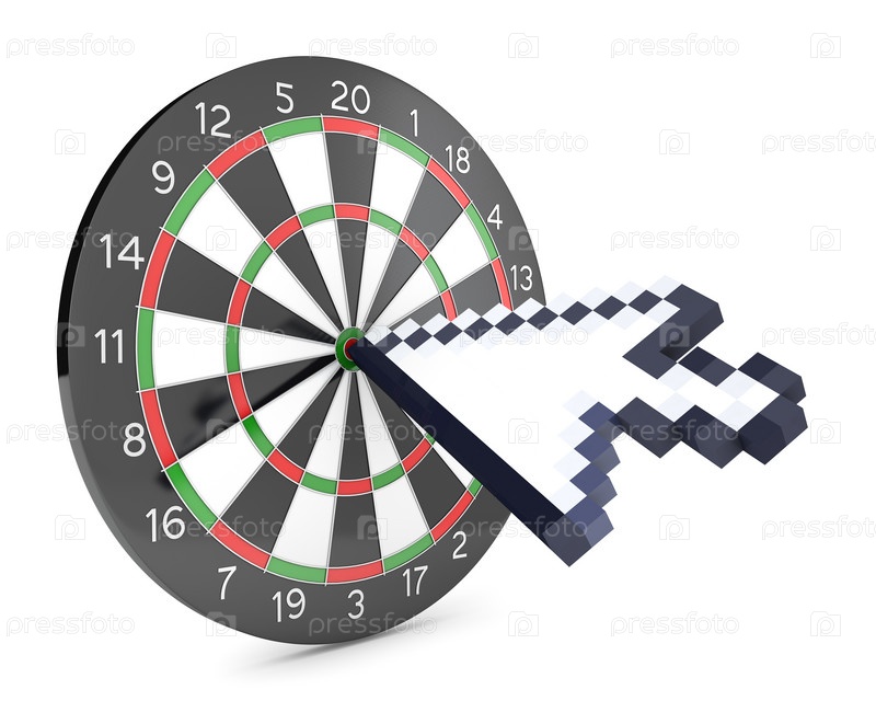 Курсор в виде стрелки попадает в цель, изолировано на белом фоне